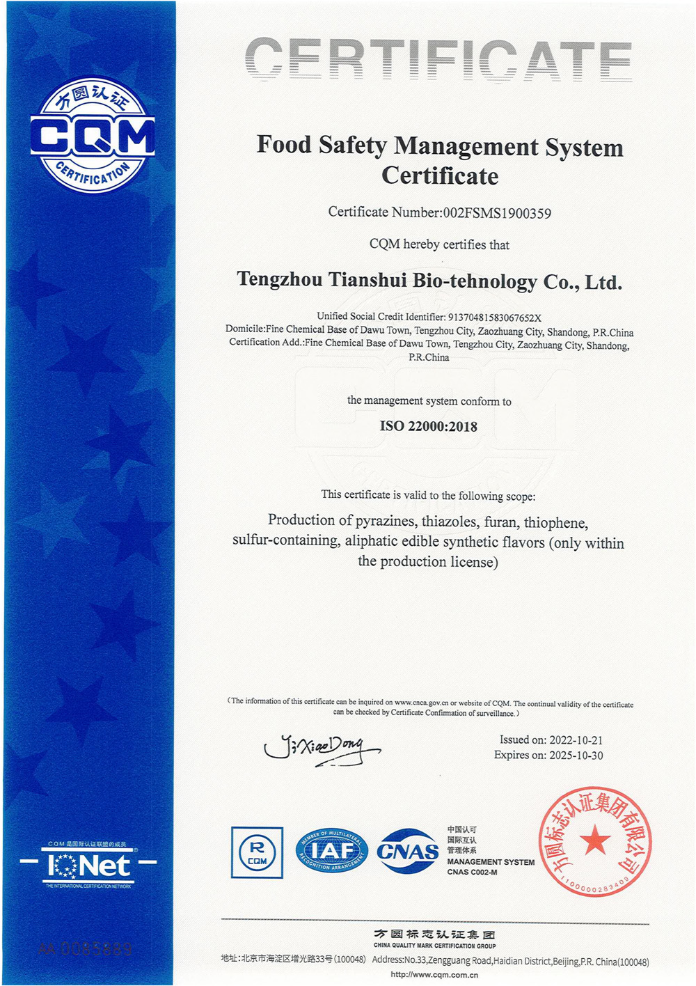 滕州市天水生物科技有限公司成立于2011年9月,是目前國(guó)內(nèi)雜環(huán)類(lèi)合成食品香料、日化香料和醫(yī)藥中間體生產(chǎn)經(jīng)營(yíng)的綜合性企業(yè)。坐落于山東省滕州市生物醫(yī)藥產(chǎn)業(yè)基地,總投資5000余萬(wàn)元,占地面積約30000平方米,員工百余人。公司先后被評(píng)為高新技術(shù)企業(yè)、專(zhuān)精特新中小企業(yè)、科技型中小企業(yè),建有市級(jí)重點(diǎn)實(shí)驗(yàn)室1處,并先后獲得ISO9001質(zhì)量體系認(rèn)證、ISO22000食品安全體系認(rèn)證、kosher認(rèn)證和Halal認(rèn)證。是香精香料及食品配料協(xié)會(huì)會(huì)員單位及滕州市中小企業(yè)協(xié)會(huì)理事單位。